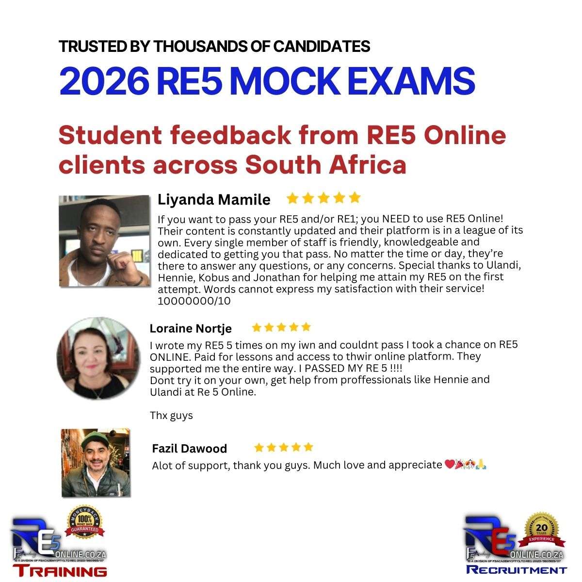 The RE5 exam is challenging, but you don’t have to walk into the exam room guessing. Our RE5 Mock Exams give you 90 days of unlimited online practice with questions that reflect the style and difficulty of the actual FSCA RE5 exam.